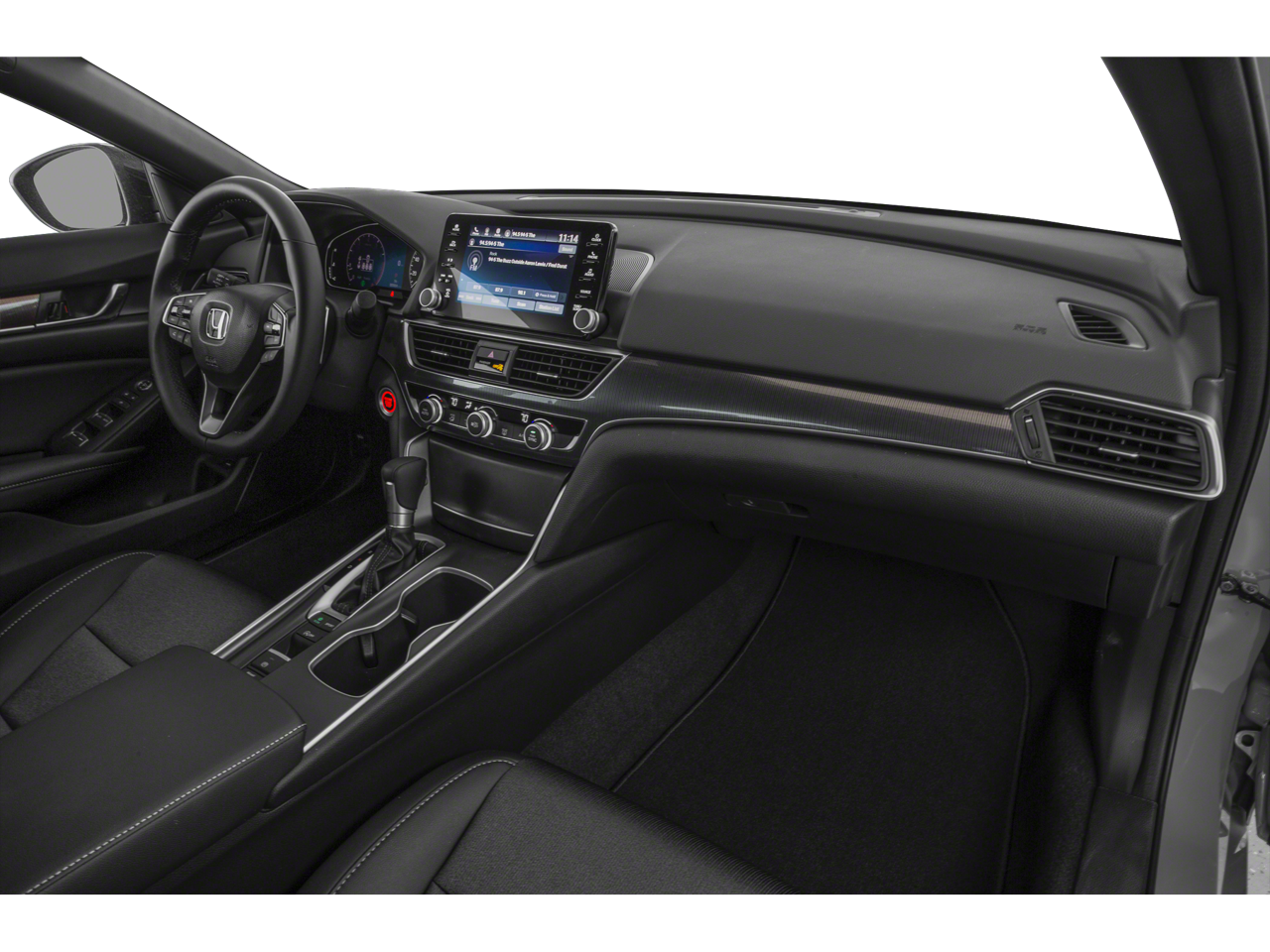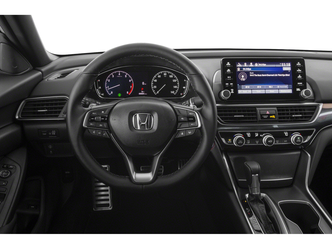 4-Wheel Disc Brakes, 8 Speakers, ABS brakes, Adaptive Cruise Control: Adaptive Cruise Control (ACC) with Low-Speed Follow, Air Conditioning, Alloy wheels, AM/FM radio, Apple CarPlay/Android Auto, Auto High-beam Headlights, Automatic temperature control, Brake assist, Bumpers: body-color, Delay-off headlights, Driver door bin, Driver vanity mirror, Dual front impact airbags, Dual front side impact airbags, Electronic Stability Control, Emergency communication system: HondaLink, Exterior Parking Camera Rear, Fabric w/Synthetic Leather Seat Trim, Forward collision: Collision Mitigation Braking System (CMBS) + FCW mitigation, Four wheel independent suspension, Front anti-roll bar, Front Bucket Seats, Front Center Armrest, Front dual zone A/C, Front fog lights, Front reading lights, Fully automatic headlights, Illuminated entry, Knee airbag, Lane Departure Warning System, Leather Shift Knob, Leather steering wheel, Low tire pressure warning, Occupant sensing airbag, Outside temperature display, Overhead airbag, Overhead console, Panic alarm, Passenger door bin, Passenger vanity mirror, Power door mirrors, Power driver seat, Power steering, Power windows, Radio data system, Radio: 180-Watt AM/FM Audio System, Rear anti-roll bar, Rear seat center armrest, Rear window defroster, Remote keyless entry, Security system, Speed control, Speed-sensing steering, Speed-Sensitive Wipers, Split folding rear seat, Spoiler, Steering wheel mounted audio controls, Tachometer, Telescoping steering wheel, Tilt steering wheel, Traction control, Trip computer, Variably intermittent wipers, and Wheels: 19 Machine-Finished Alloy w/Black Inserts.
