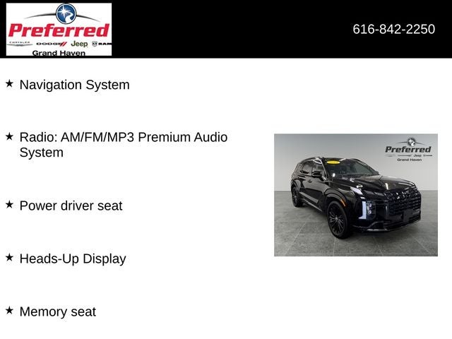Packed with an impressive array of advanced technology and convenience features, the 2024 Palisade Calligraphy Night Edition is designed to enhance your driving experience. Enjoy the convenience of a power liftgate, remote keyless entry, and a user-friendly infotainment system with Apple CarPlay and Android Auto integration. Stay connected and entertained with the premium audio system and the available Heads-Up Display.